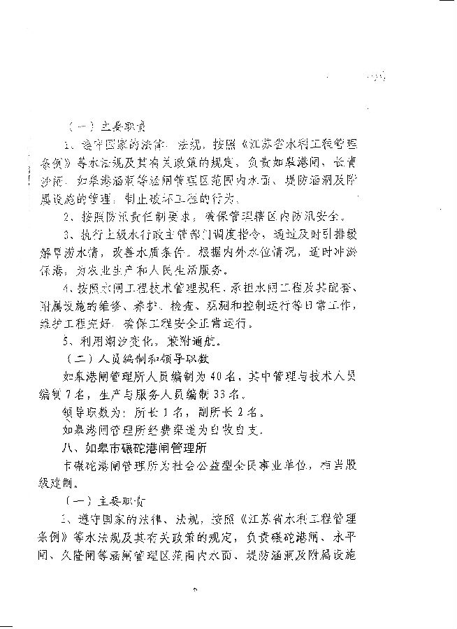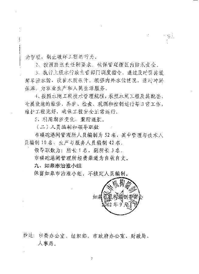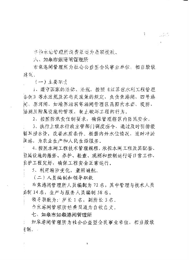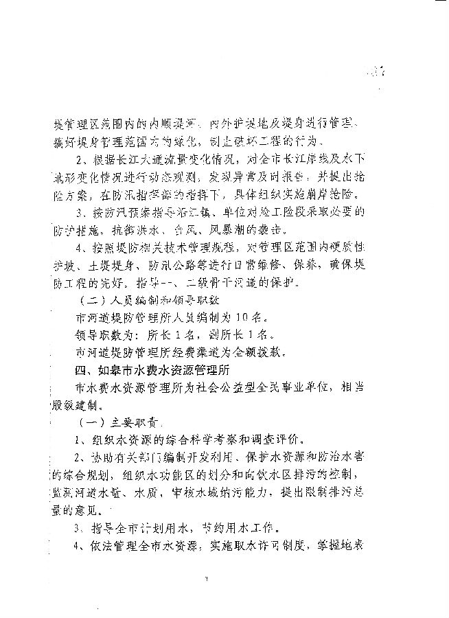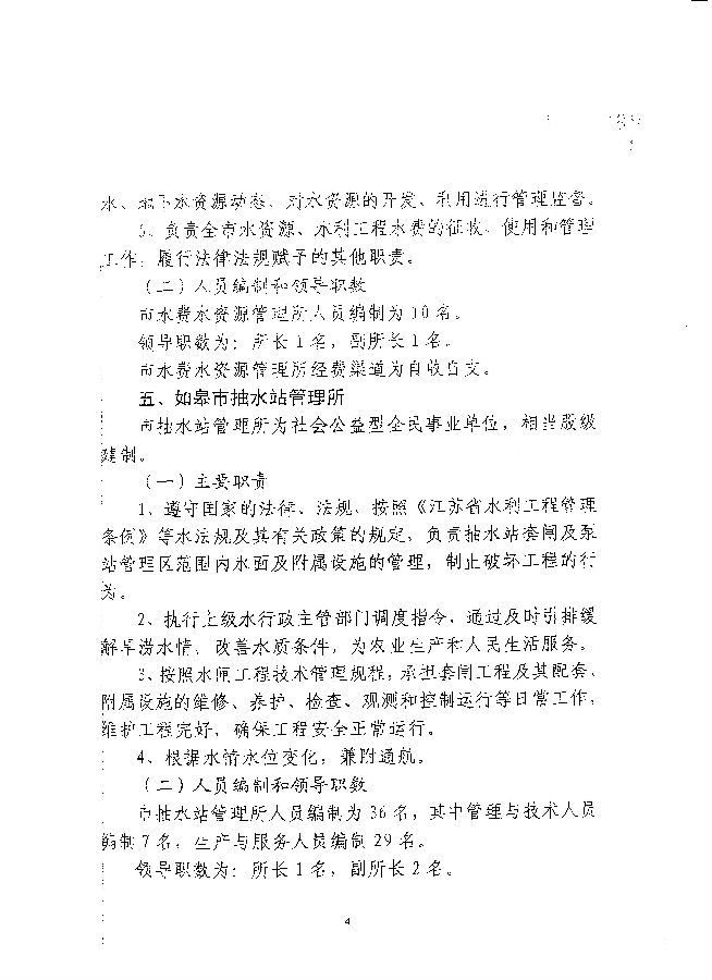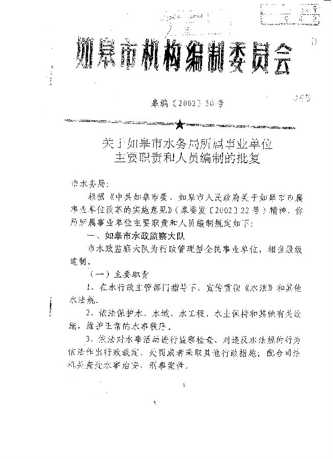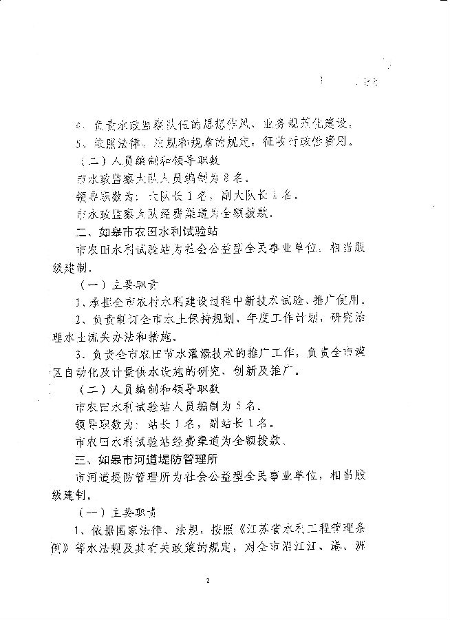 關于如皋市水務局所屬事業(yè)單位主要職責和人員編制的批復